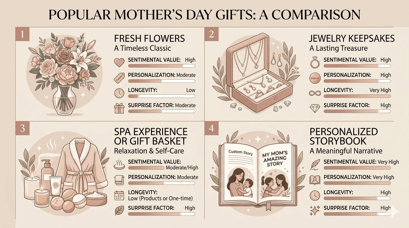 Gift idea | Personal feel | Surprise factor | Lasting keepsake value | Kid involvement | Overall Mother’s Day impact |