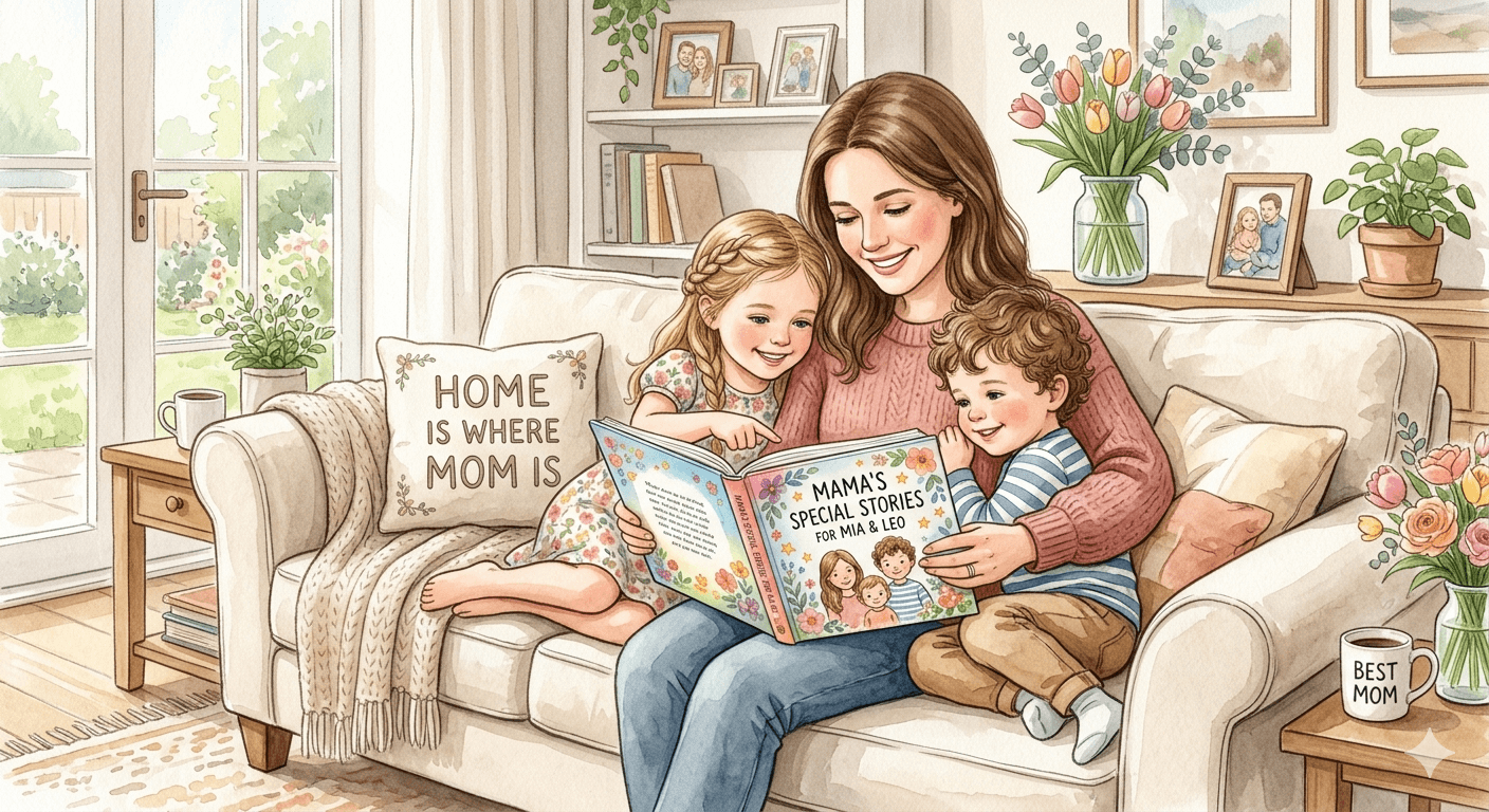 Instead of giving Mom another object, you give her a story — one built from the little moments she already loves: bedtime routines, park walks, silly breakfasts, cuddles on the couch, or the everyday rituals that make motherhood feel so real.
